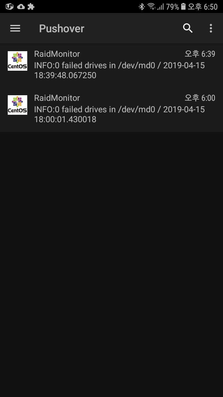 mdadm 레이드 상태를 보여주는 명령어를 이용해서 "Failed Devices"값을 찾아서 있으면 PushOver를 이용해서 스마트폰에 경고메세지를 보내는 방식이다.