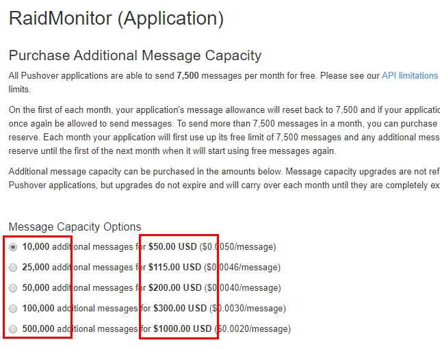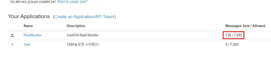 API Token 생성시 7,500건이라는 한정된 메세지를 보낼수 있다.