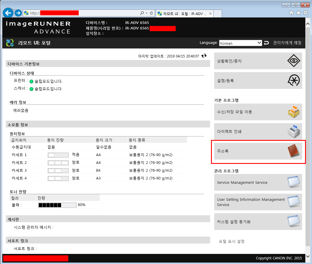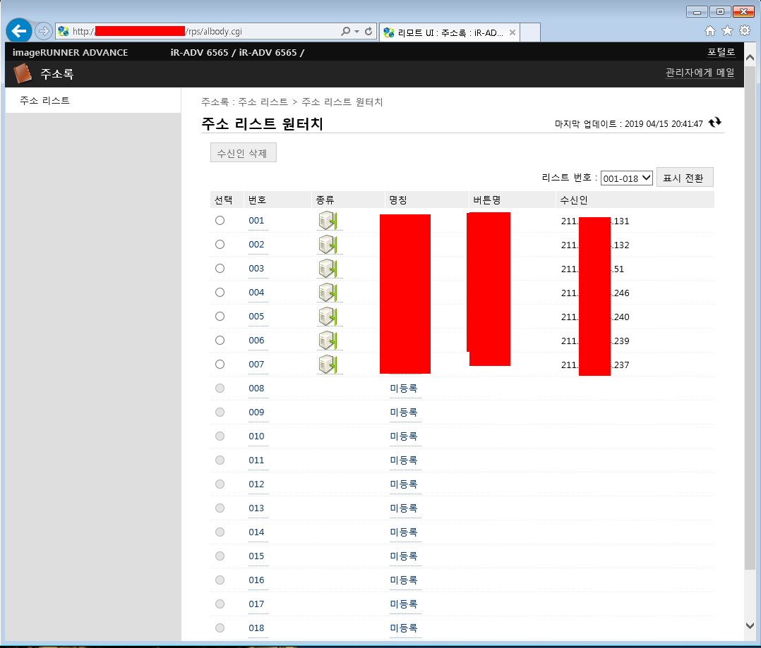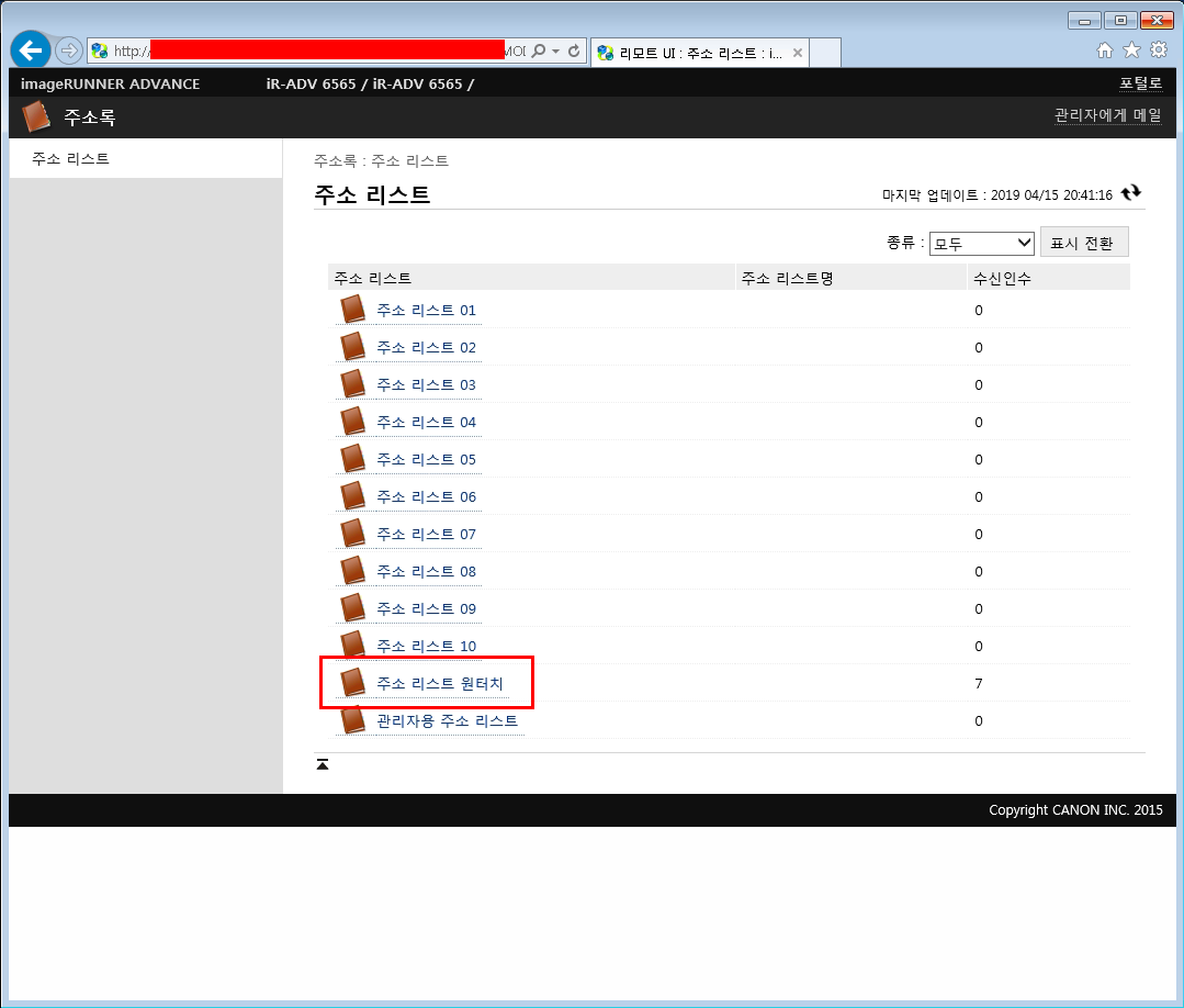 관리페이지 -> 주소록 -> 주소 리스트 원터치