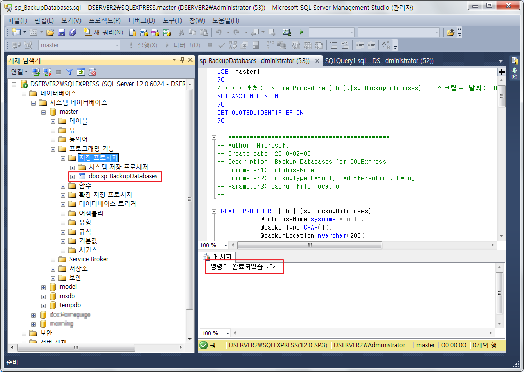 1. Store procedure등록 (sp_BackupDatabase.sql)