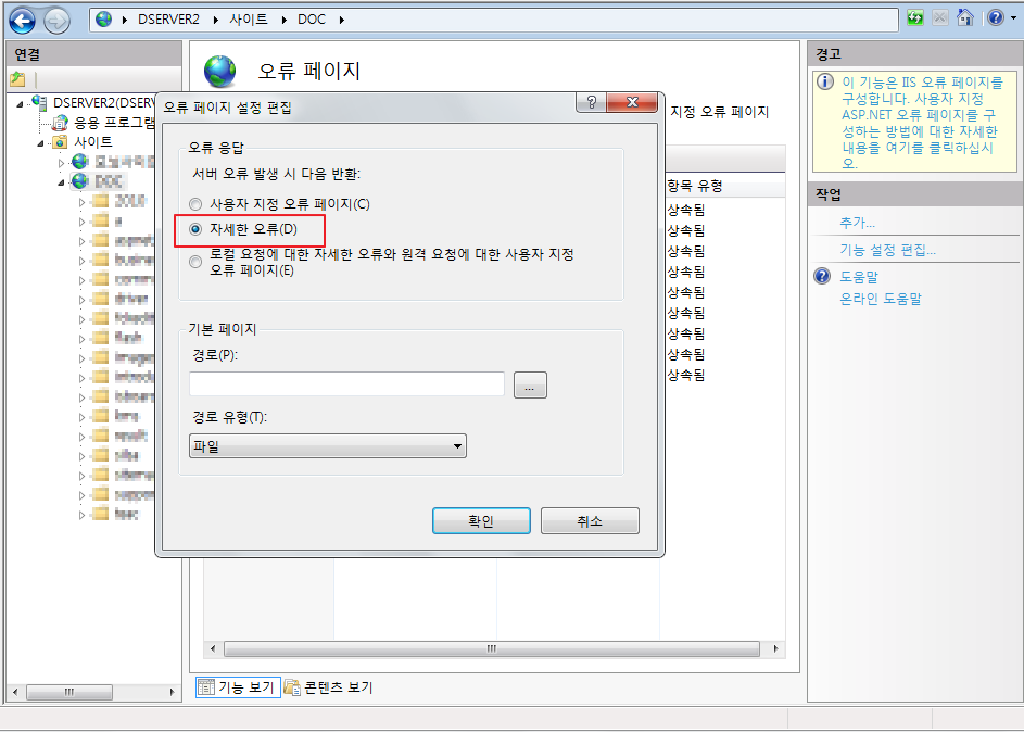 1. IIS 설정(ASP, 오류 페이지 설정변경)