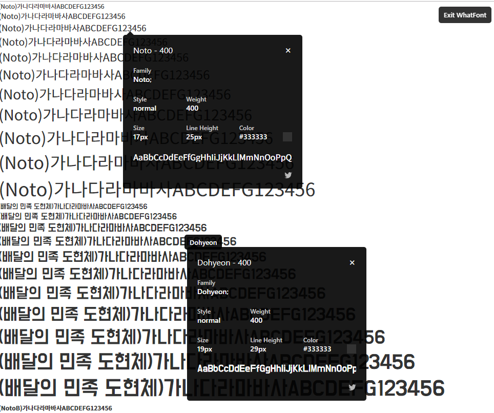 로딩된 페이지에 적용된 폰트정보를 확인할수 있다.