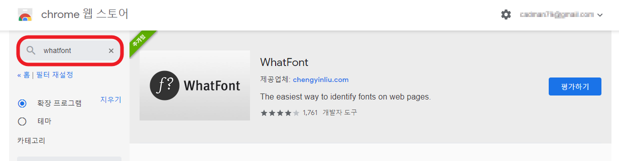 chrome 확장 프로그램(웹 스토어)에서 whatfont를 검색해서 확장 프로그램을 설치하면
