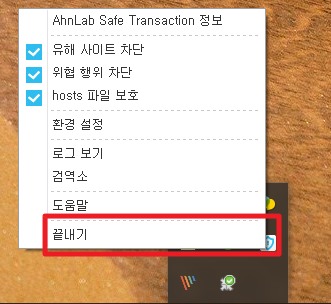 원격접속이 안될때 Ahnlab Safe Transaction 을 종료하면 바로 접속되는 경우가 많다.