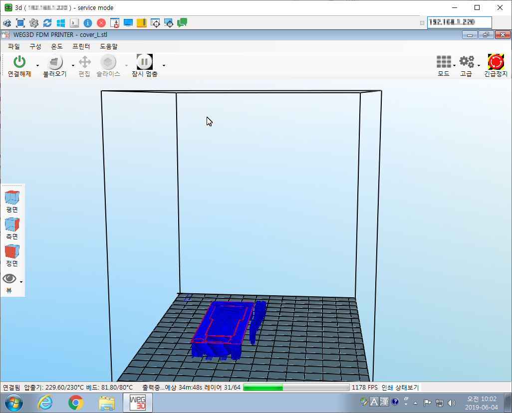 3D프린터와 출력용 컴퓨터를 설치하고 원격으로 출력할경우 프로그램 구동 불가 내지는 OpenGL오류를 보여주는데 이것은 RDP접속할경우 RDP제한(OpenGL 1.0)때문에 그렇게 됩니다.