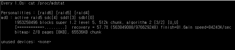 watch명령어를 통해 레이드 빌드과정을 실시간으로 볼수 있습니다.
