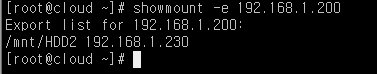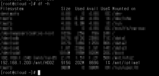 # mount -t nfs 192.168.1.200:/mnt/HDD2 /mnt/iptime1