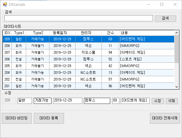 등록,수정,삭제,검색 간단한 기능만 테스트