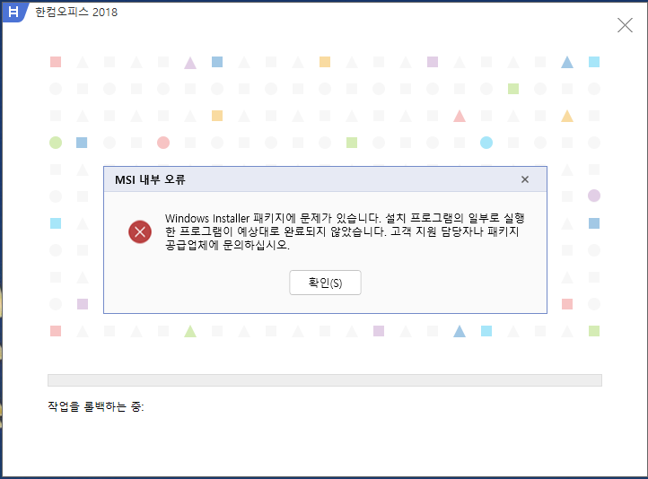 한글2018 깔다 열받아... MSI 에러 라고 뜨면