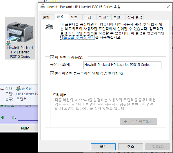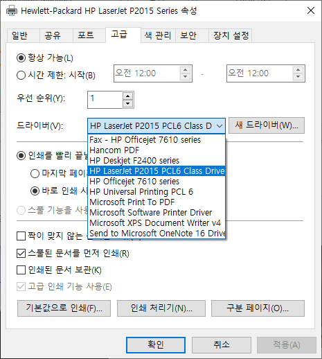 사례로는 HP LaserJet P2035 프린터 공유시 윈도우10에서 기본 지원되는 클래식 드라이버가 설정되어 있는경우 프린터 공유 실패하는 경우도 발생합니다.