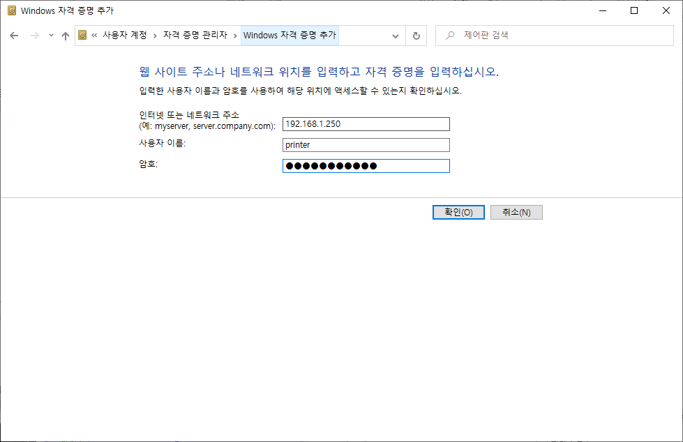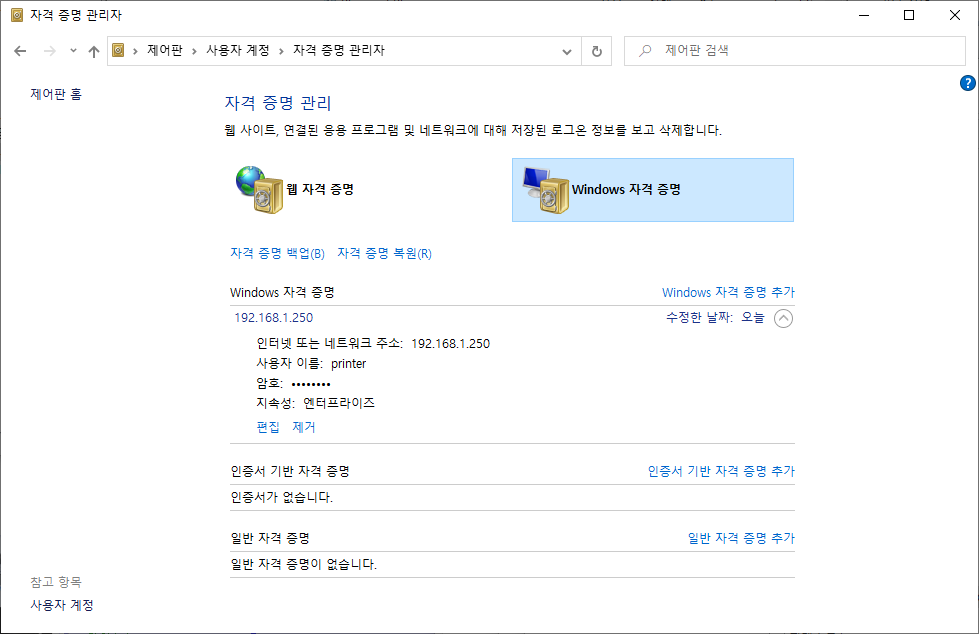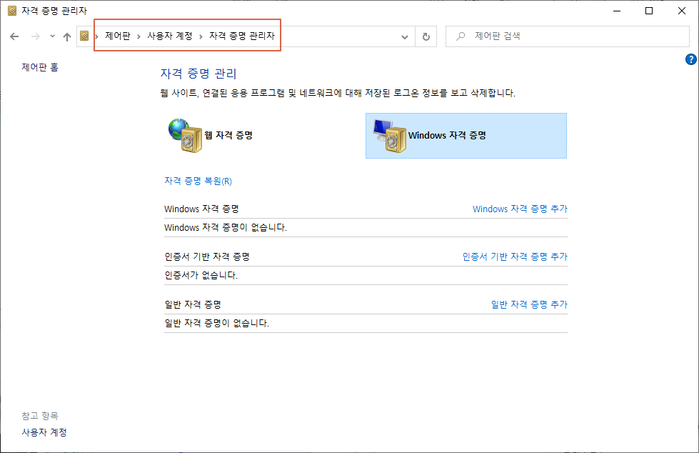 1. Windows 자격 증명을 추가합니다.