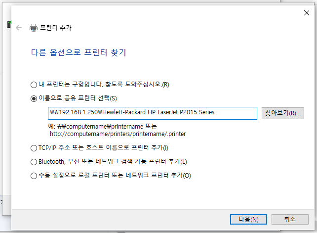 2. 프린터 추가(수동)으로 연결합니다.