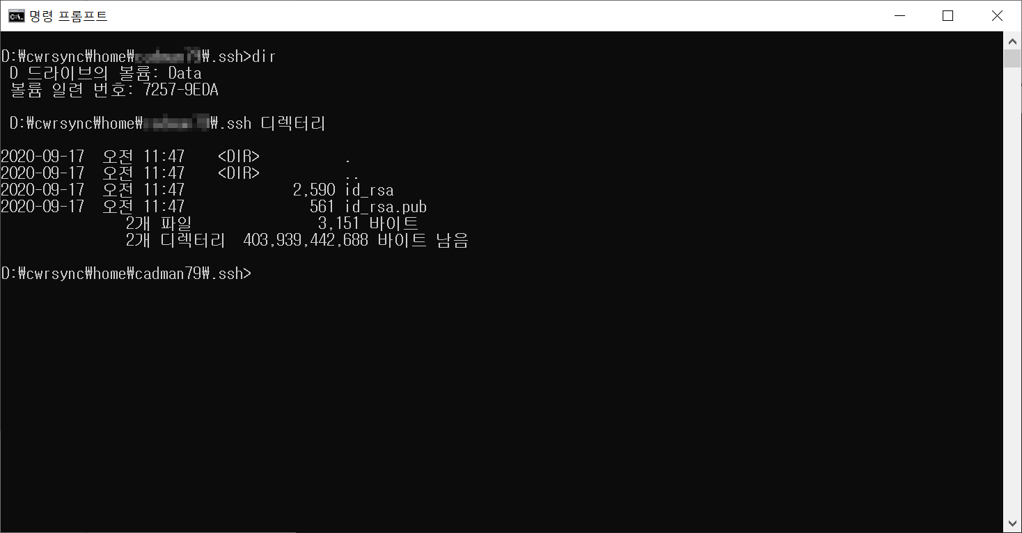 cd d:\cwrsync\home\{사용자명}\.ssh