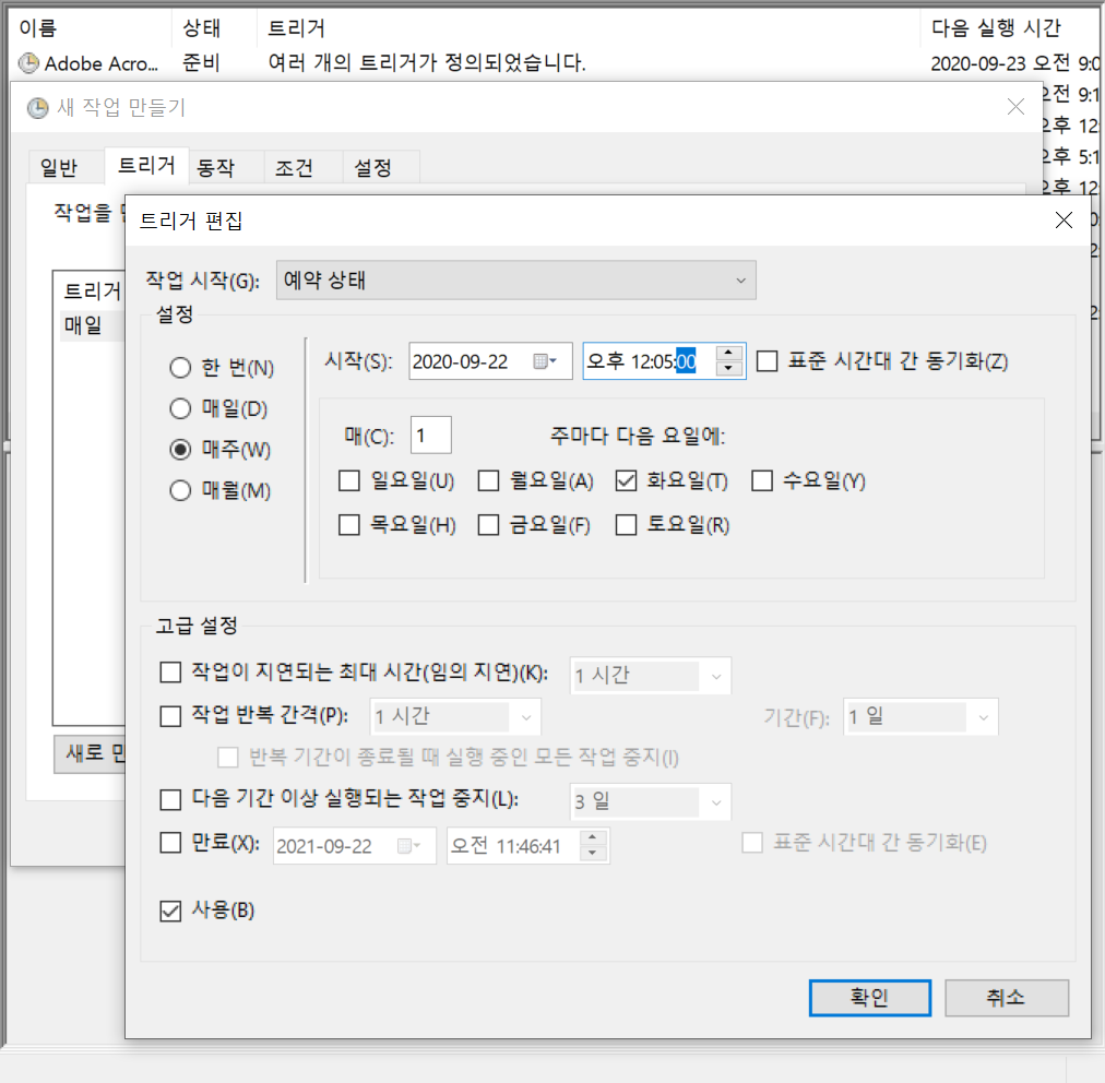 매주 한번 백업하는 스케쥴러를 작성한 예제입니다.