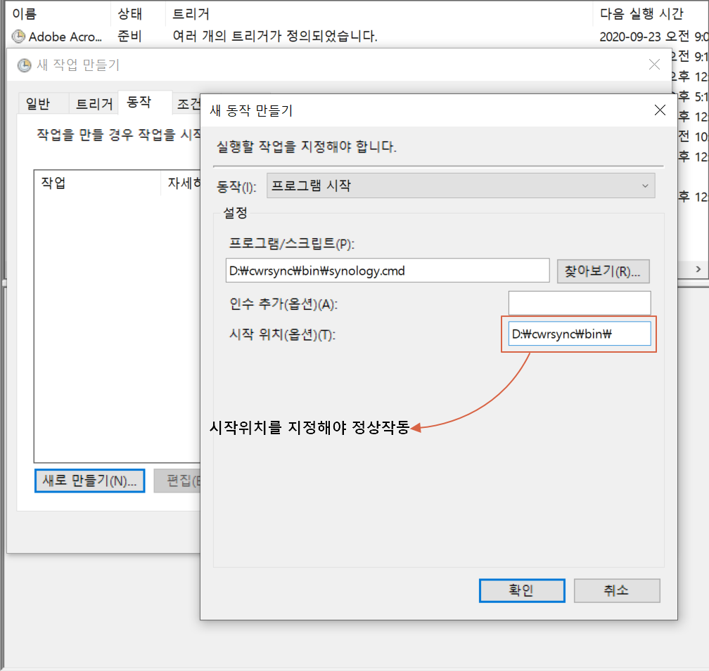 4-3. 백업 스크립트 작성 (d:\cwrsync\bin\synology.cmd)