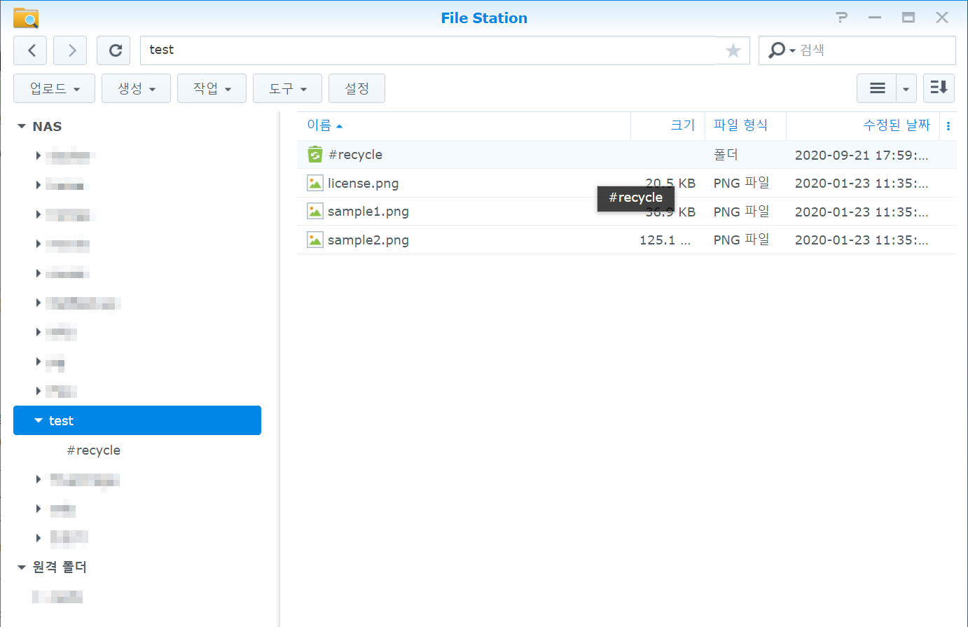 시놀로지 폴더 "test" 공유폴더를 백업하는 작업을 구현해보겠습니다.