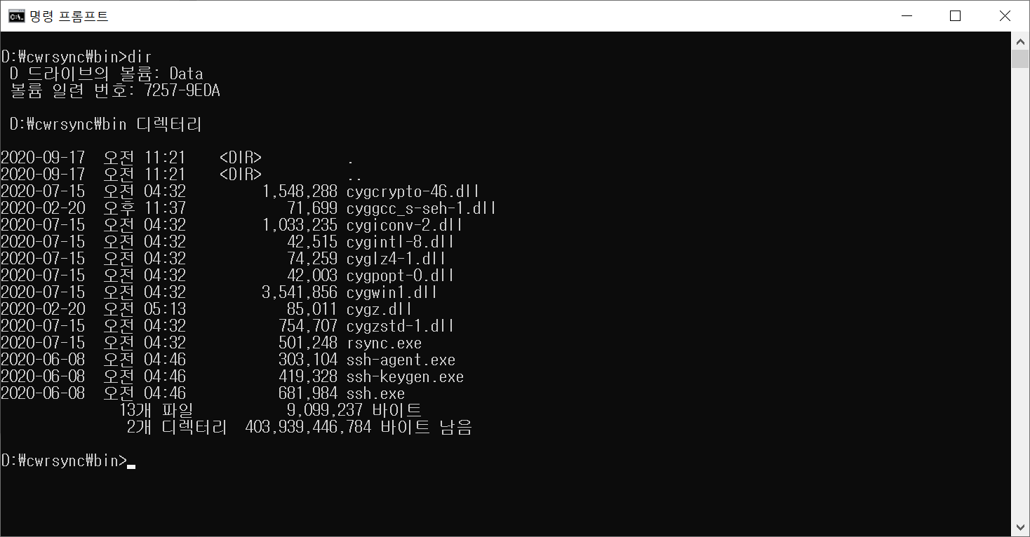 cwrsync\bin 폴더로 이동하면 라이브러리파일들을 볼수 있습니다.