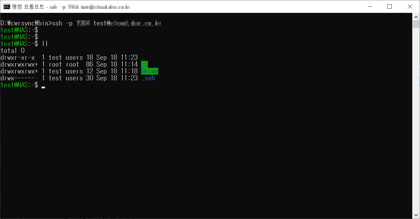 cwrsync.cmd파일을 실행하면 현재 디렉토리를 기준으로 사용자 폴더를 생성합니다.