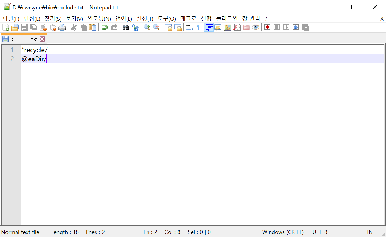 이럴경우 예외폴더로 지정할려면 예외처리할 폴더나 파일을 exclude.txt 파일로 정의한뒤 예외처리작업을 하면 됩니다.