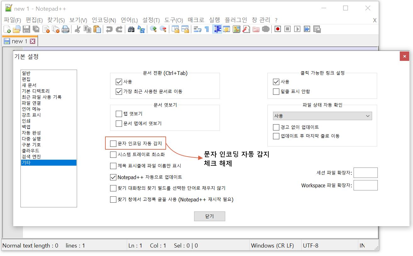 자동 인코딩이 활성화 되어 있으면 EUC-KR로 바뀌는거 방지하기 위함입니다.