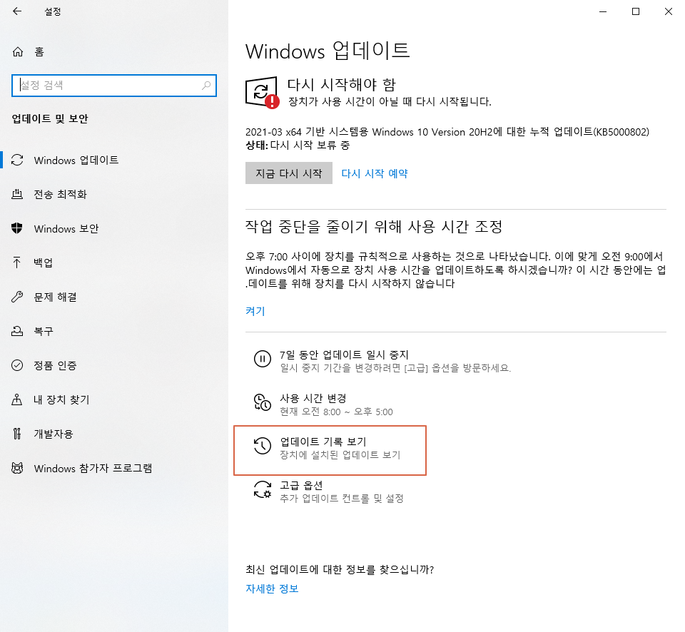 KB5000808업데이트 제거