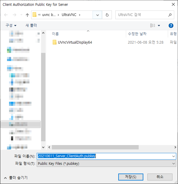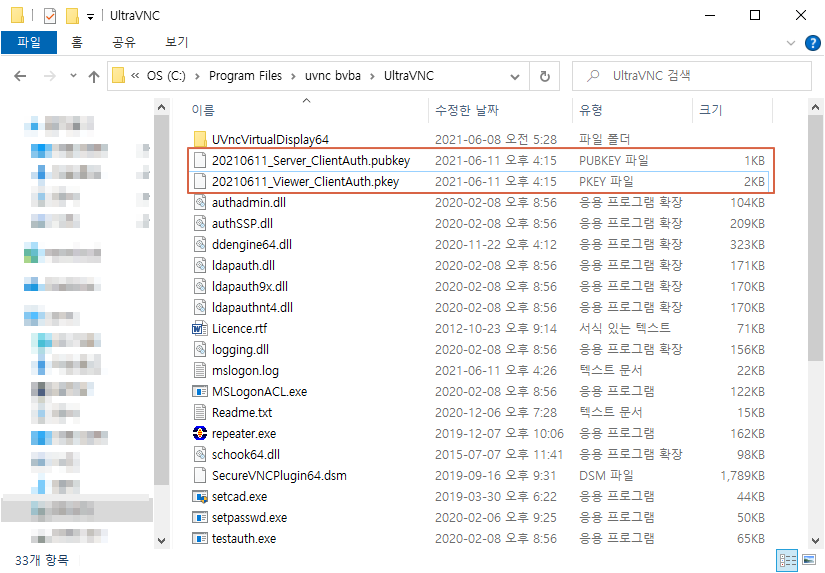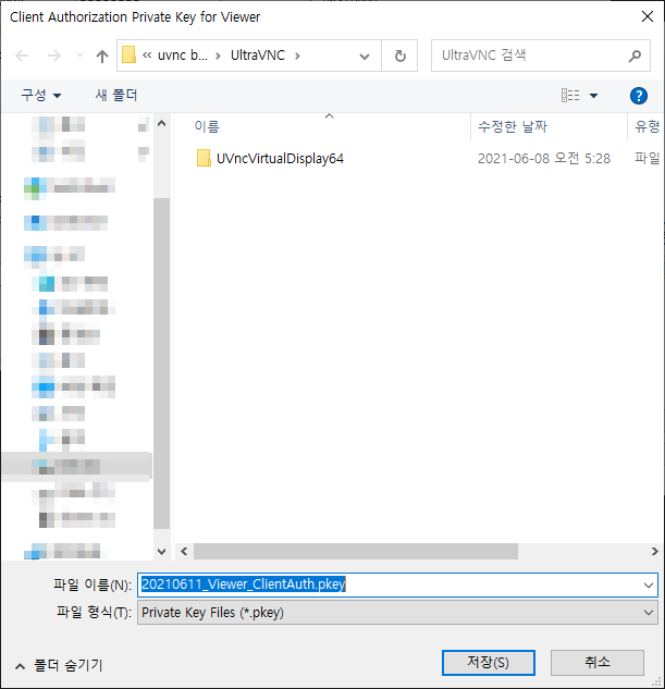 Viewer용 키 저장 (C:\Program Files\uvnc bvba\UltraVNC)