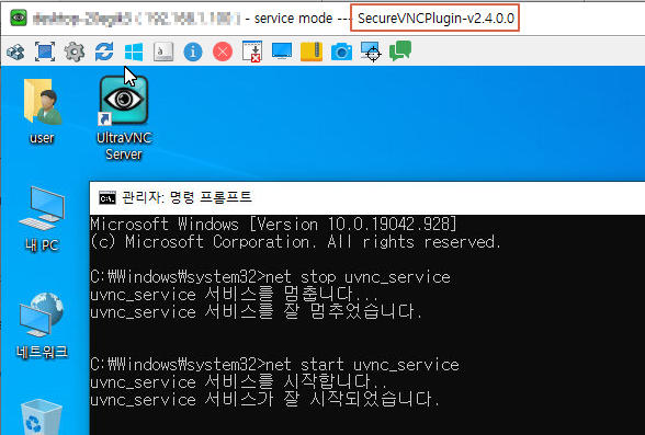 UltraVNC서비스 재시작을 합니다.