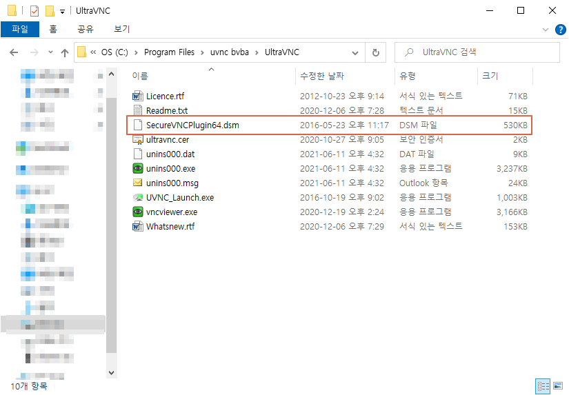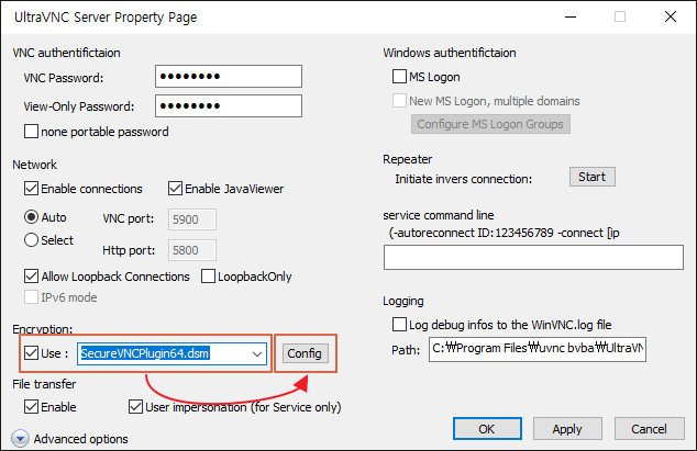 UltraVNC Encryption Plugins (보안 플러그인, Viewer에 복사요망)