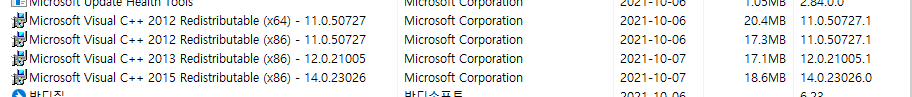 프로그램 추가 제거에서 아래 라이브러리 삭제