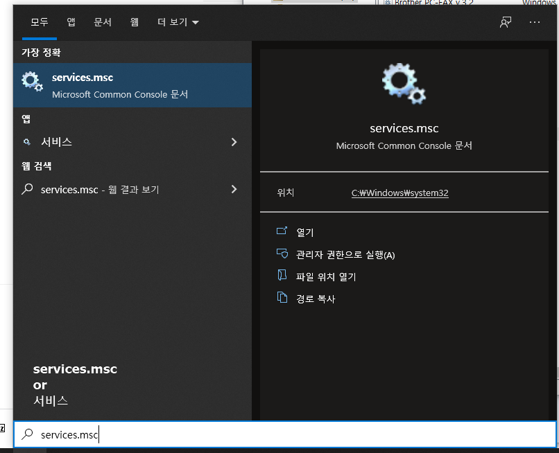 WIN+S -> services.msc(서비스)