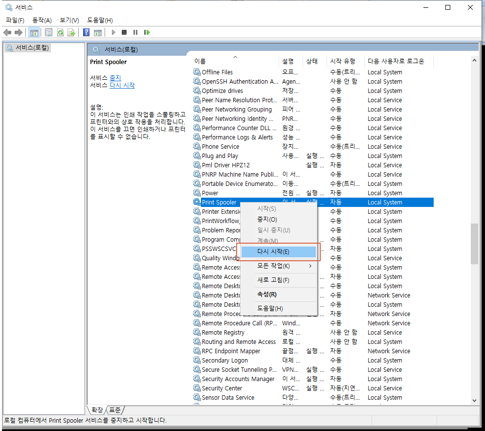 3. Print Spooler 다시시작