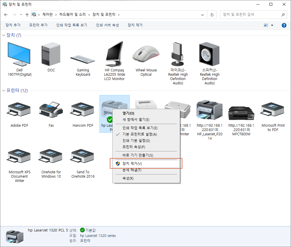 1. 제어판에서 프린트 장치제거