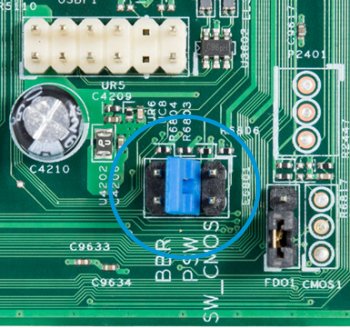 SW_CMOS bridged (closed) = CMOS reset to default settings during next restart