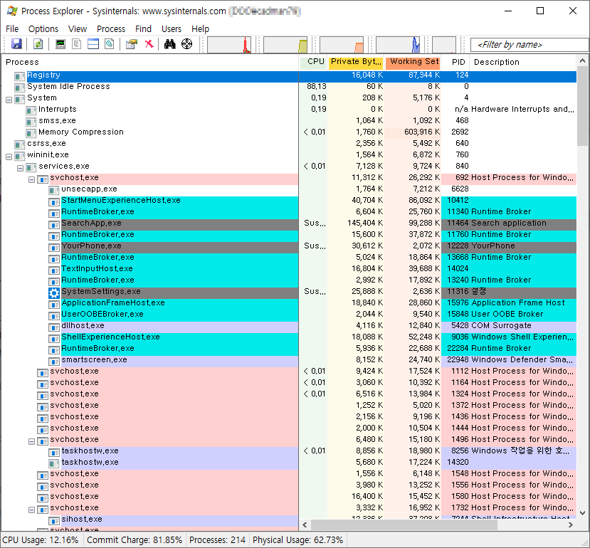 프로세스 세부항목을 볼수 있는 유틸리티