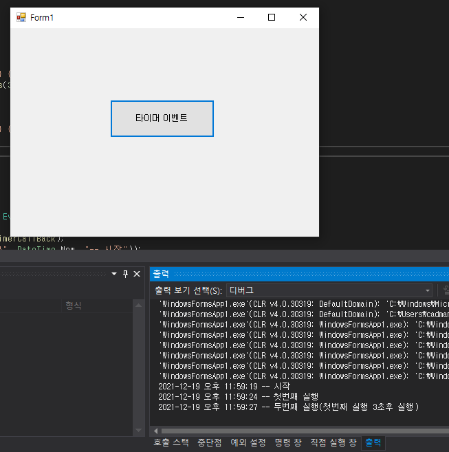 Trace.WriteLine(string.Format("{0} {1}", DateTime.Now, "-- 두번째 실행(첫번째 실행 3초후 실행)"));