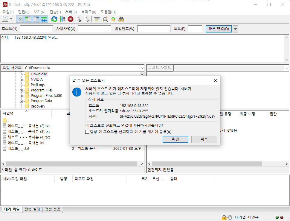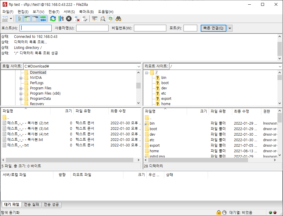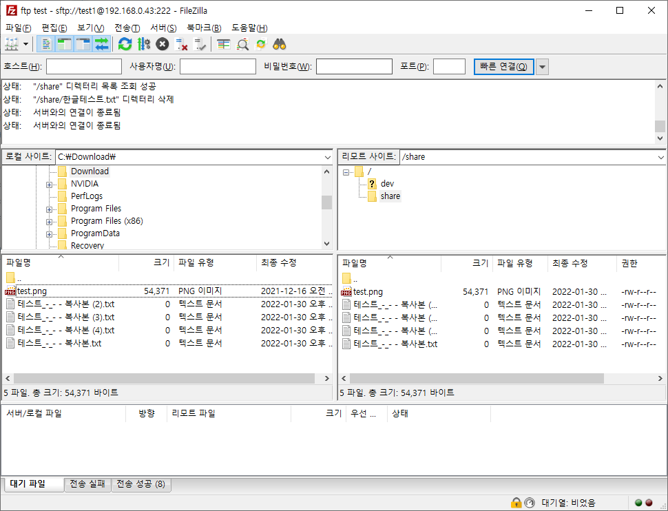 -rw-r--r-- 1 test1 users 298530 1월 30 21:09 한글테스트.txt