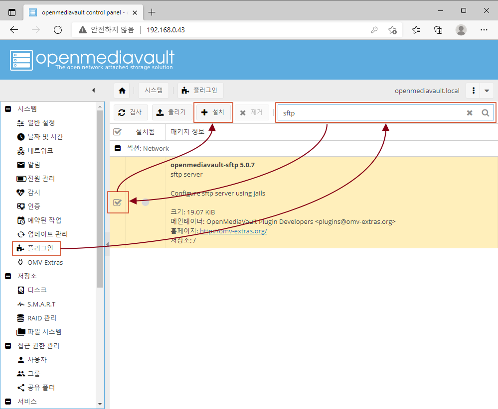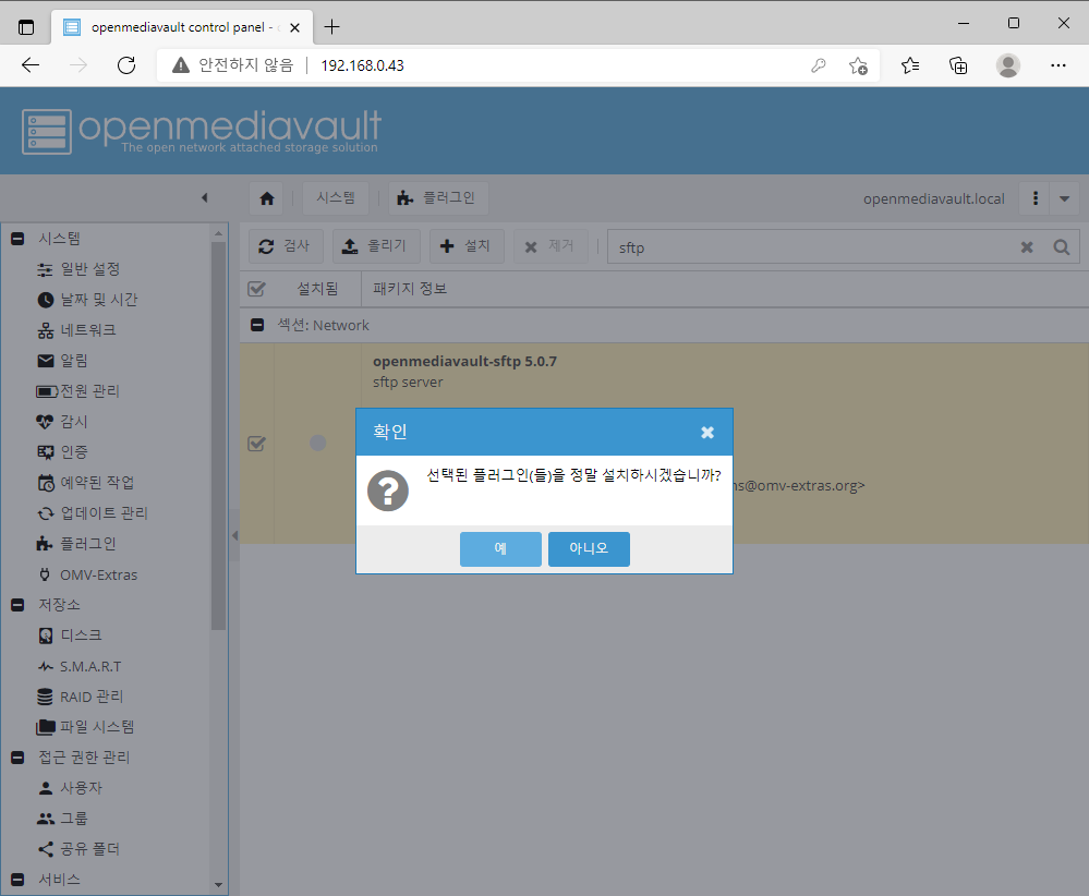 SFTP 플러그인은 OMV-Extras 기능이 활성화되어야 설치가능합니다.