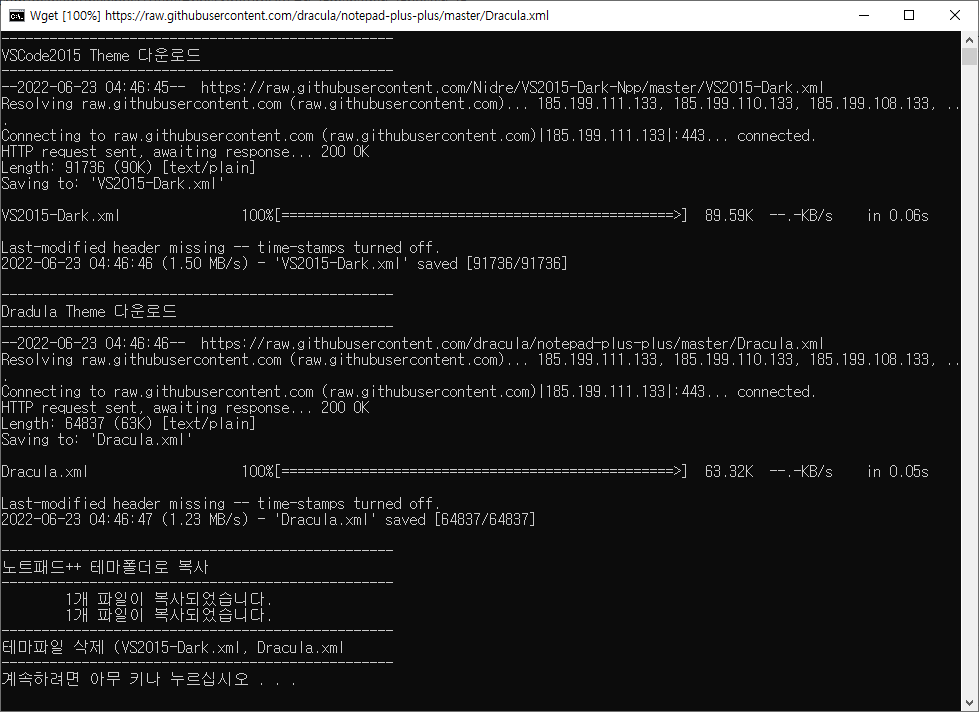 테마 파일 다운로드 및 테마 적용 폴더로 복사하는 배치파일입니다.