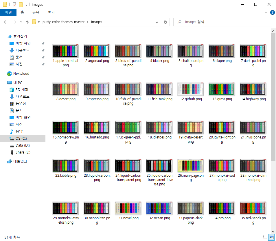 images폴더는 테마가 적용된 PuTTY화면을 확인할 수 있습니다.