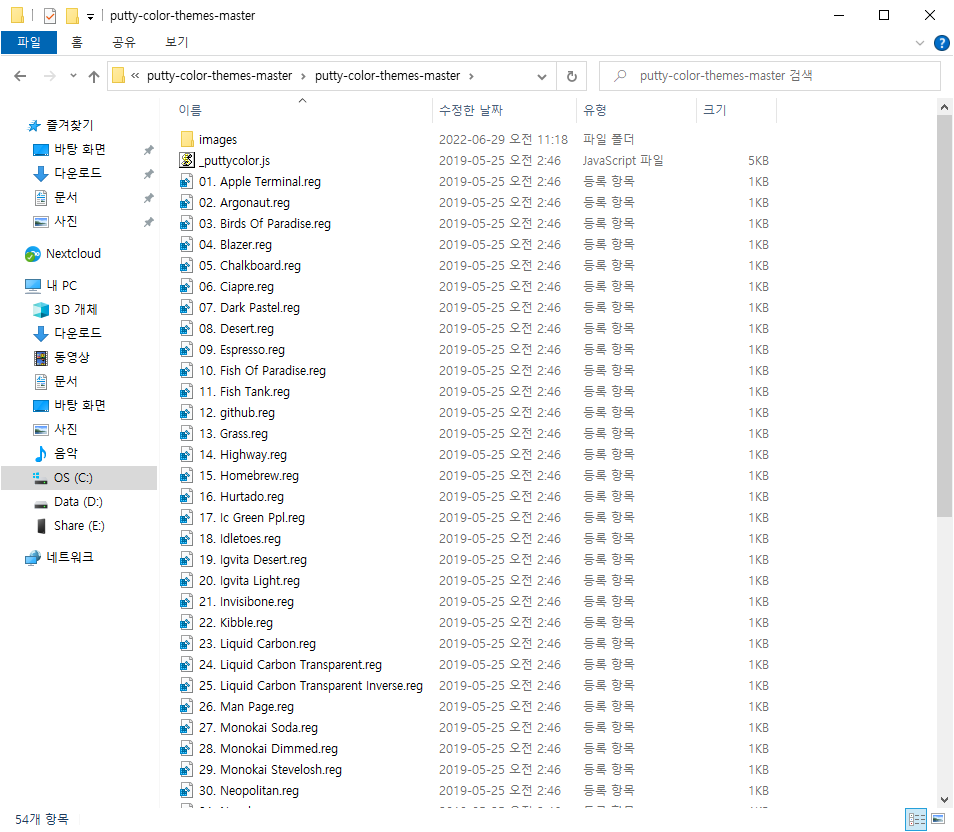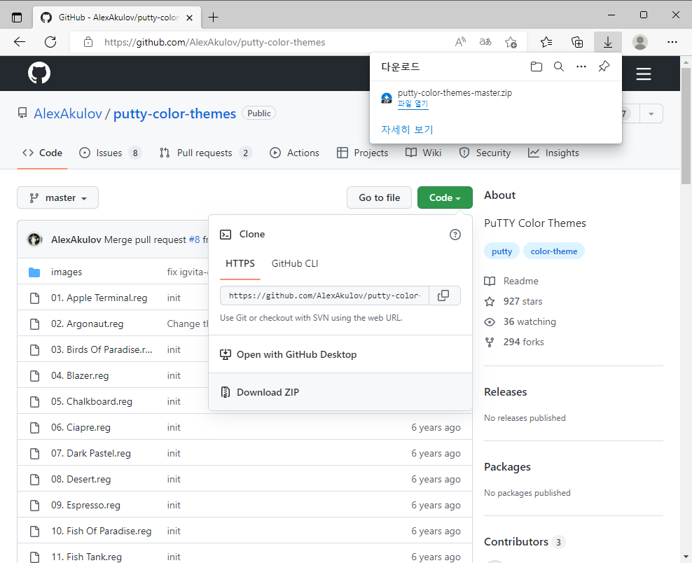1. PuTTY Color Themes github에서 소스(Download zip)를 다운로드합니다.