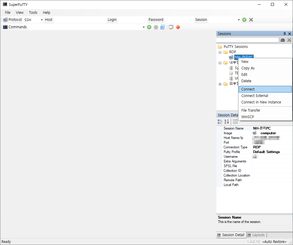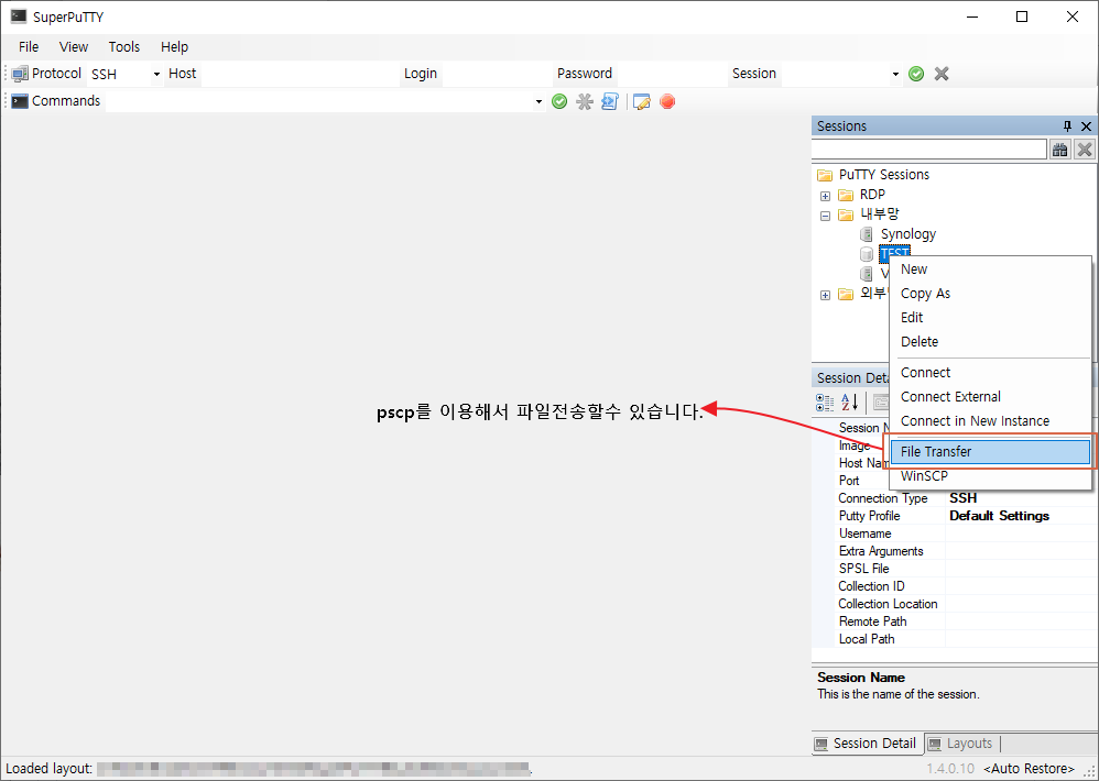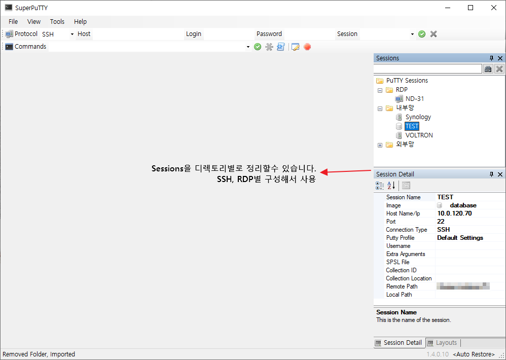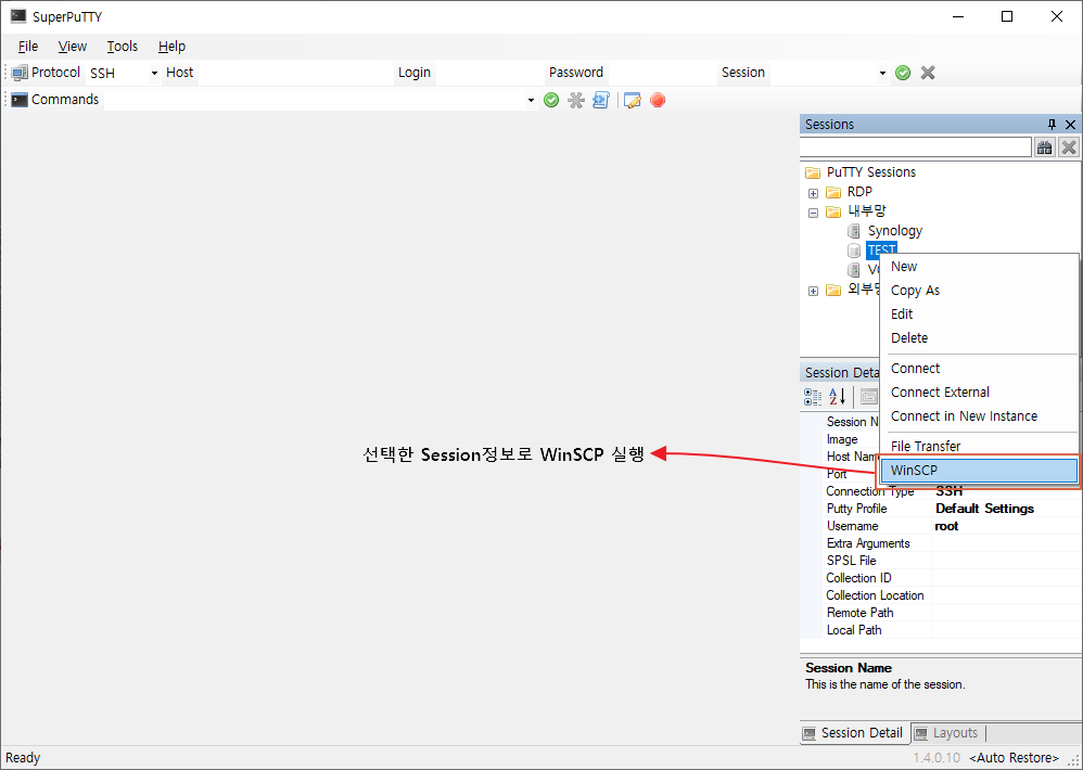 SuperPuTTY 섹션 관리