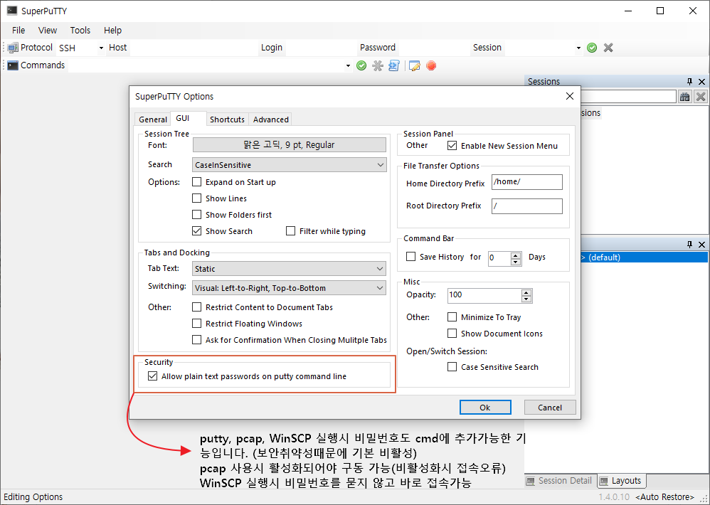 putty, pscp, winscp을 구동할 때 비밀번호를 command 옵션에 넣을 수 있는 기능입니다.