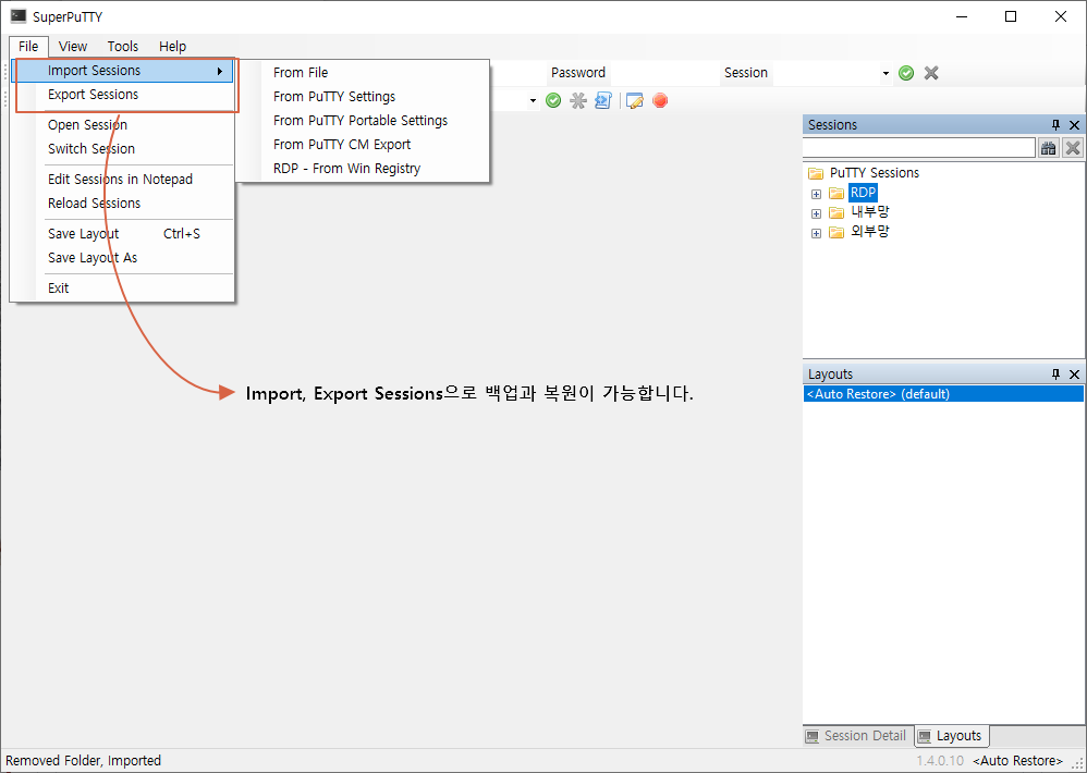 SuperPuTTY 섹션 백업&복원