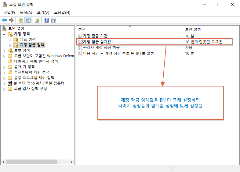 - 원격데스크톱연결(RDP) 접속 시 비밀번호를 과도하게 틀렸을 경우 계정이 일시적으로 잠김