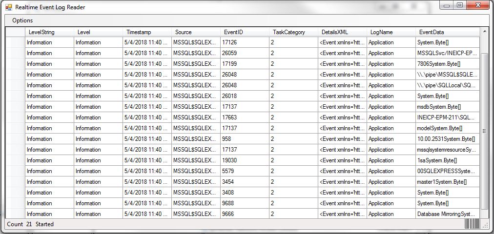 Real Time Event Log Reader