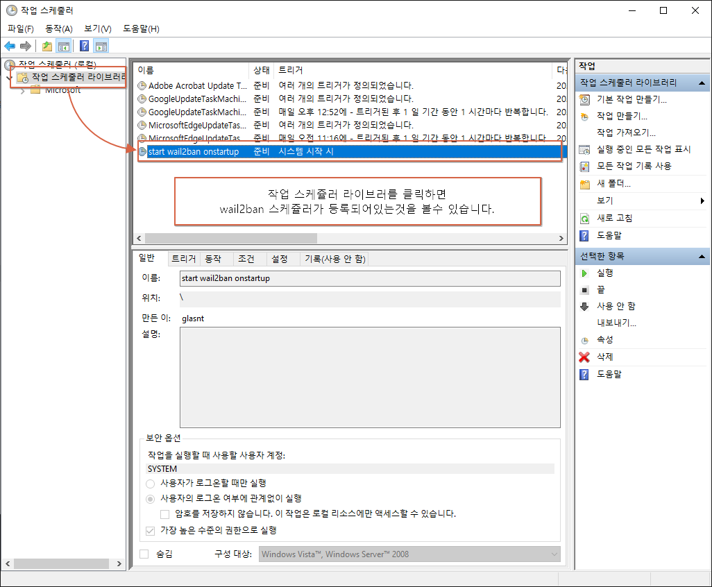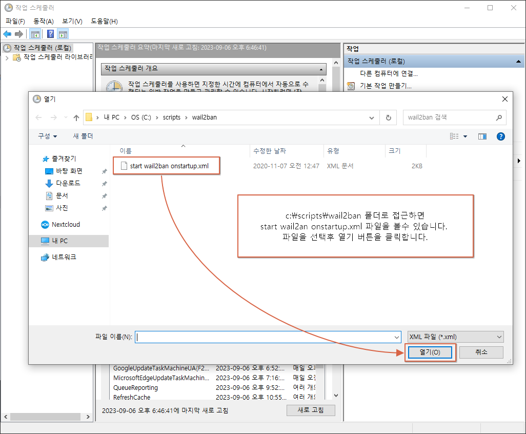 | start wail2ban onstartup.xml | 윈도우 스케쥴러 등록 XML |