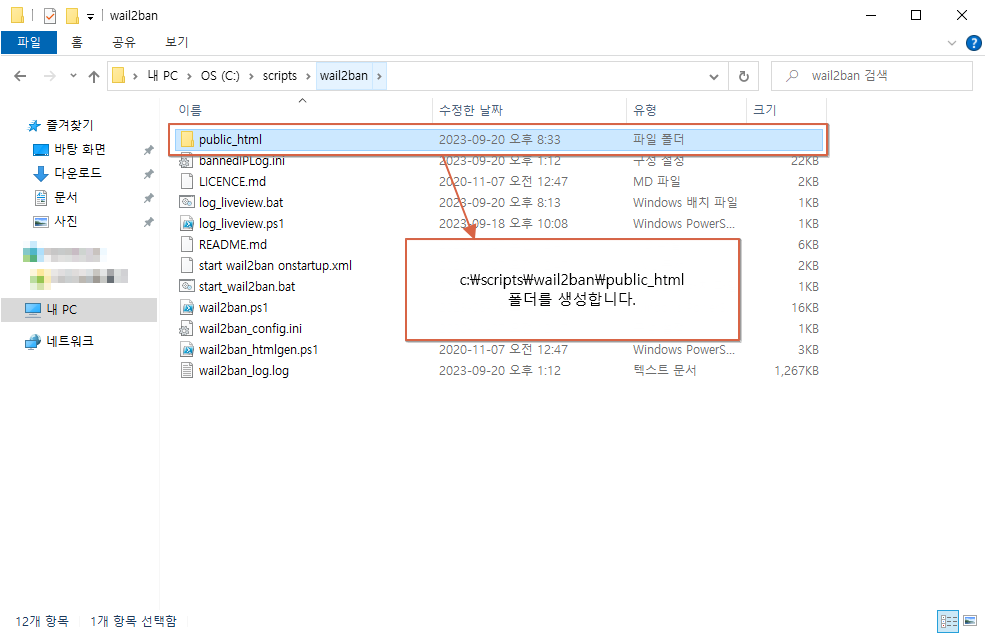 - c:\scripts\wail2ban\public_html 폴더 생성