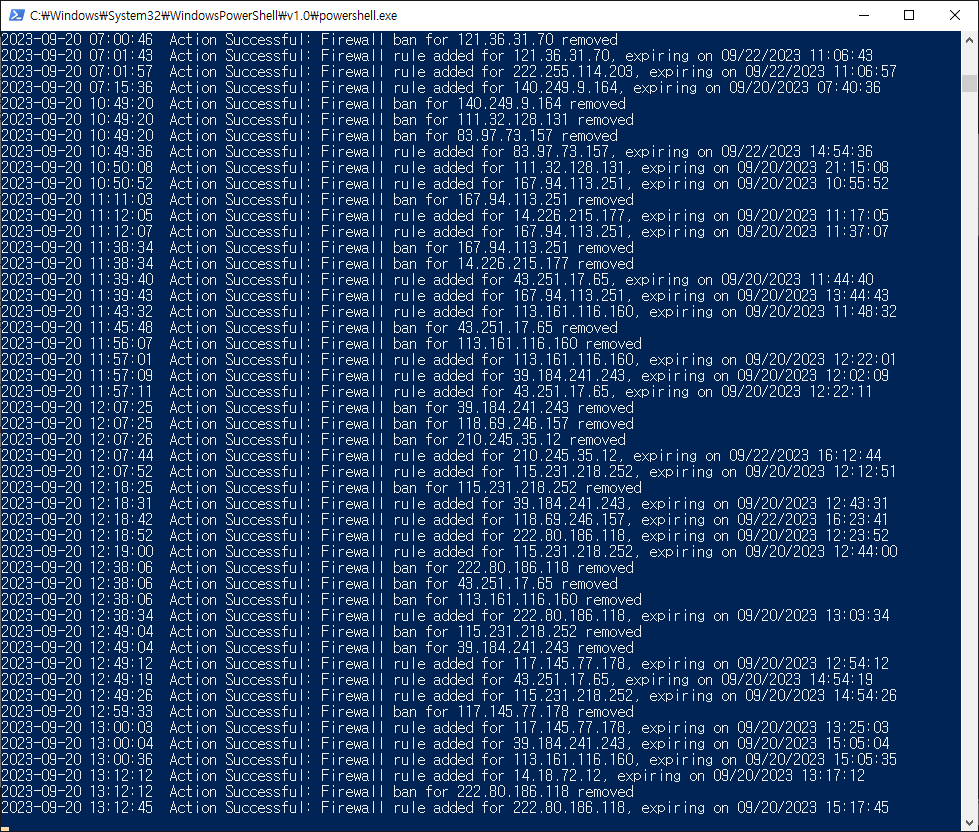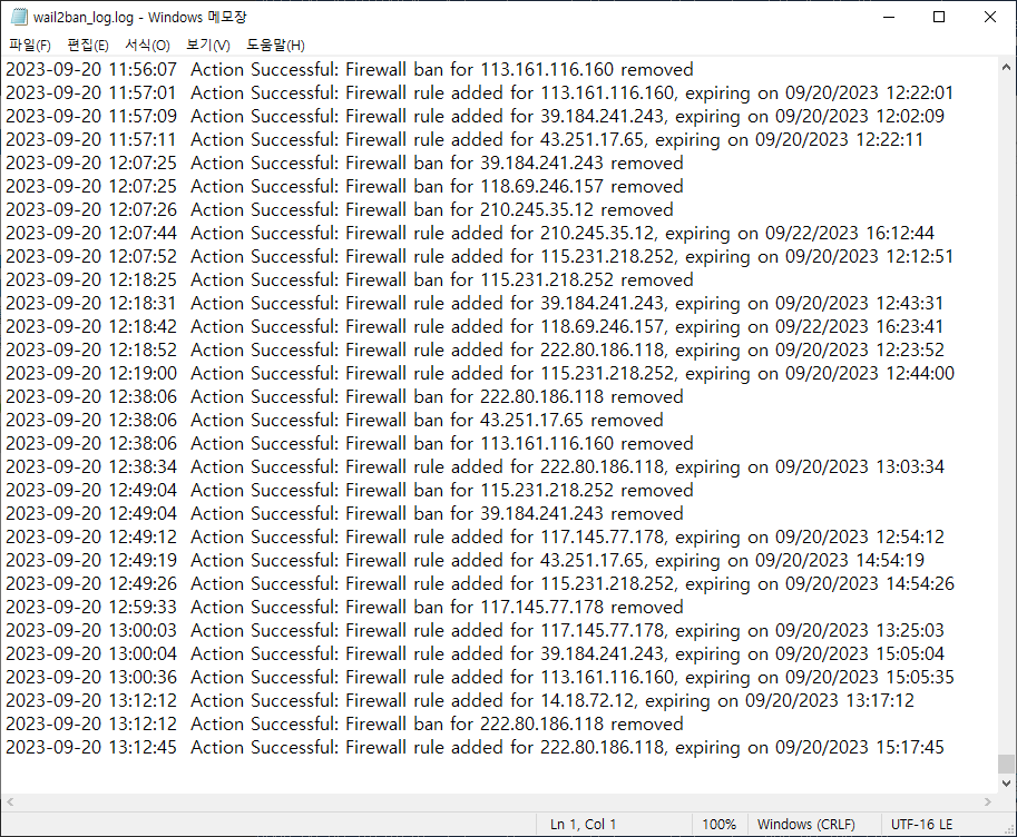 IP에 대한 차단 및 해제 로그를 확인할수 있습니다.