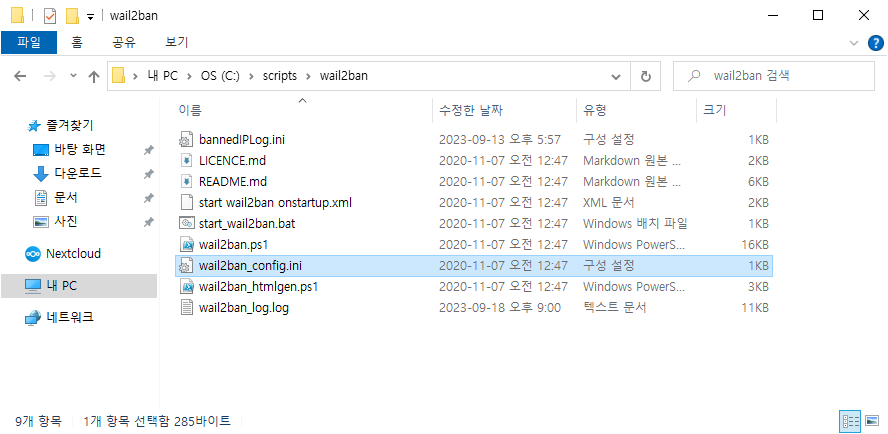 | wail2ban.ps1 | wail2ban PowerShell 파일(실제구동되는 스크립트) |