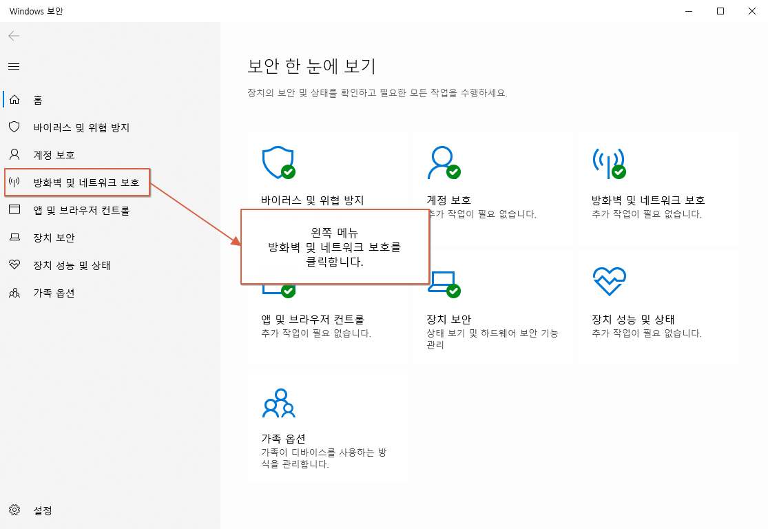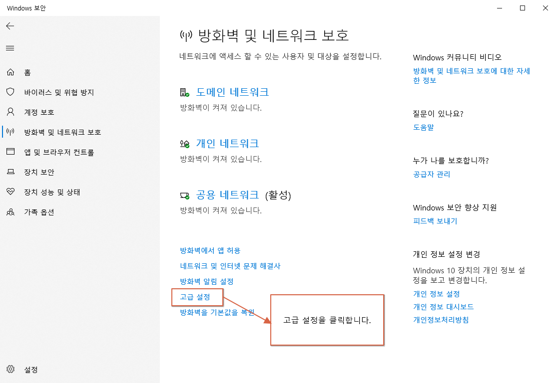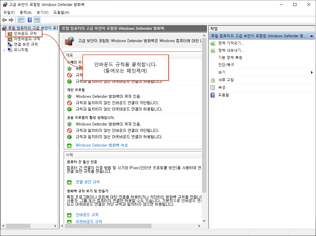 아래는 방화벽 확인 절차입니다.